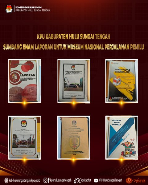 Hulu Sungai Tengah – Komisi Pemilihan Umum (KPU) Kabupaten Hulu Sungai Tengah berpartisipasi dalam program penghimpunan barang Museum Nasional Perjalanan Pemilu yang digagas KPU RI. Kegiatan ini bertujuan untuk mendokumentasikan jejak sejarah penyelenggaraan pemilu di Indonesia, sekaligus menjadi sarana edukasi bagi masyarakat luas, Jumat (12/09/2025) Dalam partisipasinya, KPU Hulu Sungai Tengah menyumbangkan enam dokumen penting yang menjadi bagian dari perjalanan demokrasi di daerah, yaitu Laporan Pelaksaan Kegiatan Tahapan Pemilihan Umum DPR, DPD, dan DPRD Tahun 2014 Kabupaten Hulu Sungai Tengah; Laporan Penyelenggaraan Pemilihan Bupati dan Wakil Bupati Hulu Sungai Tengah Tahun 2015; Laporan Kegiatan Tahapan Pemilu 2019 Di Tahun 2018 oleh KPU Kabupaten Hulu Sungai Tengah; Laporan Tahapan Pemilihan Umum Tahun 2019 oleh KPU Kabupaten Hulu Sungai Tengah; Laporan Akhir Tahapan Pemilihan Bupati dan Wakil Bupati Hulu Sungai Tengah Tahun 2020; dan Laporan Tahapan Pemilihan Bupati dan Wakil Bupati Hulu Sungai Tengah Tahun 2024 Kasubag Divisi Sumber Daya Manusia dan Partisipasi Hubungan Masyarakat KPU Kabupaten Hulu Sungai Tengah menyampaikan bahwa kontribusi ini merupakan bentuk tanggung jawab lembaga dalam menjaga memori kolektif bangsa. “Kami berharap dokumen-dokumen ini dapat memperkaya khazanah sejarah pemilu dan pilkada, serta menjadi referensi berharga bagi generasi mendatang,” ujarnya. Lebih lanjut, pihak KPU Kabupaten Hulu Sungai Tengah juga menegaskan bahwa keterlibatan daerah dalam museum nasional ini menjadi bukti bahwa demokrasi tidak hanya dirajut di pusat, tetapi juga tumbuh kuat dari daerah. Dengan adanya sumbangan laporan tersebut, diharapkan masyarakat dapat memahami lebih dalam perjalanan panjang pemilu di Indonesia, termasuk dinamika yang terjadi di tingkat lokal seperti di Kabupaten Hulu Sungai Tengah. ....