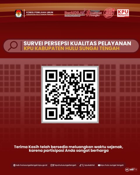 Hai #TemanPemilih, dalam rangka meningkatkan standar pelayanan publik, KPU Kabupaten Hulu Sungai Tengah berkomitmen untuk terus berbenah melalui Survei Persepsi Kualitas Pelayanan (SPKP).