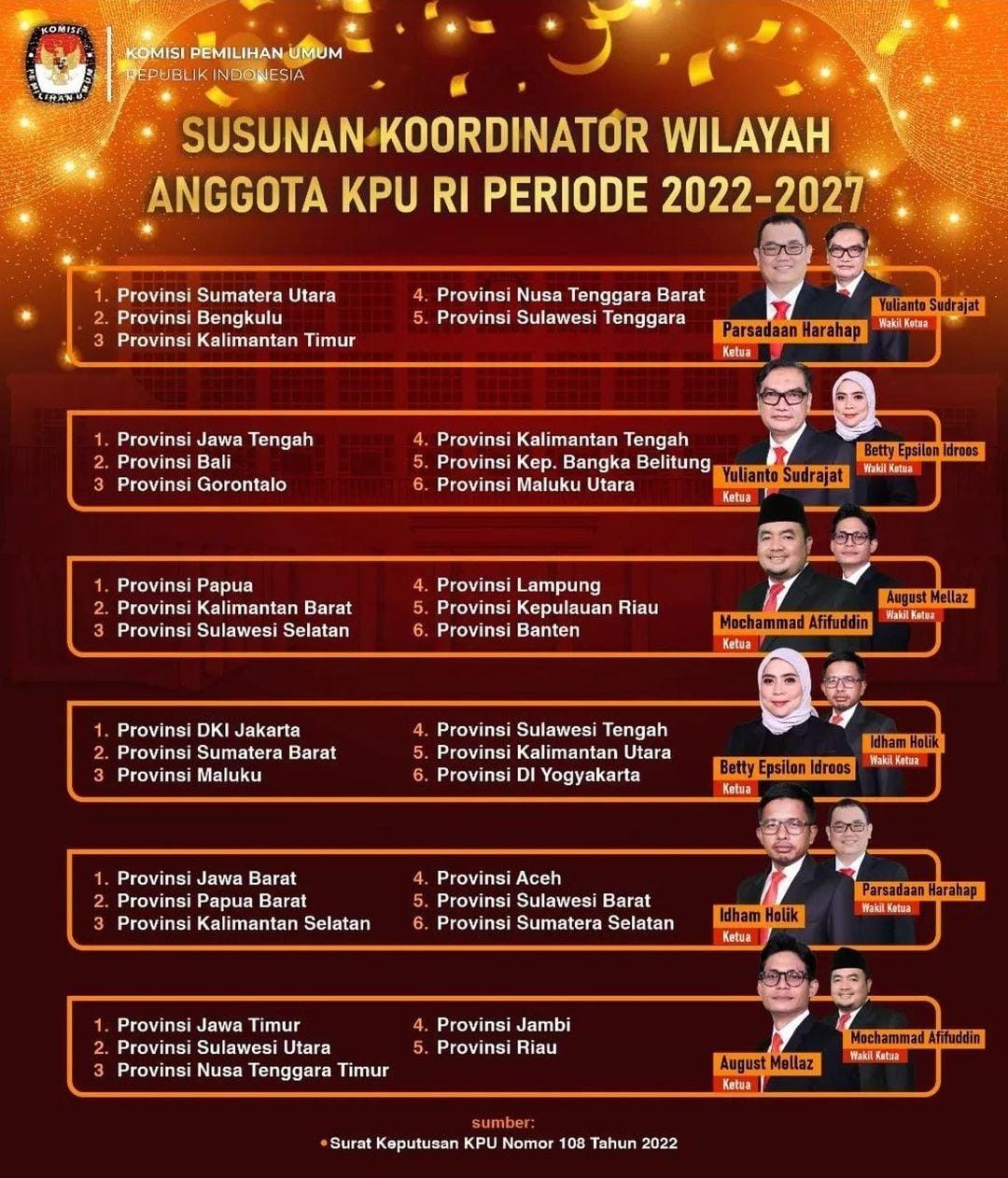 Susunan Koordinator Wilayah Anggota KPU RI Periode 2022 - 2027
